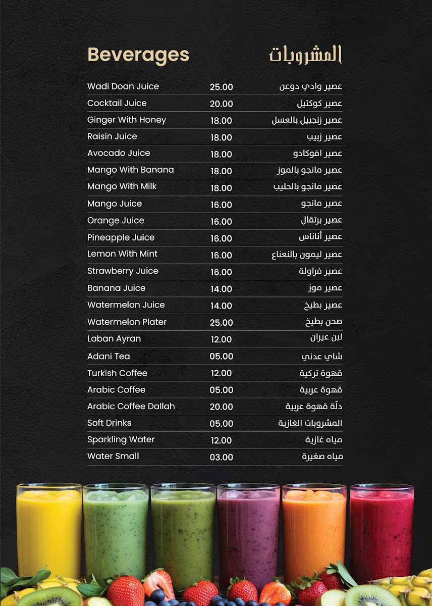 **About Wadi Doan Restaurant**Nestled in the Gold Park Building of Dubai, Wadi Doan Restaurant offers a remarkable dive into authentic Yemeni cuisine. Renowned for its Mandi and Madhbi dishes, the restaurant serves perfectly tender meats infused with rich flavors that captivate the palate. The Fattah dessert, a delightful blend of dates, cream, and honey, is a must-try. With a cozy ambiance, it caters to both casual dining and special occasions, ensuring an inviting experience. Attentive service enhances the meal, making each visit memorable. For Yemeni food lovers and newcomers alike, Wadi Doan is a culinary treasure that shouldn’t be missed.
