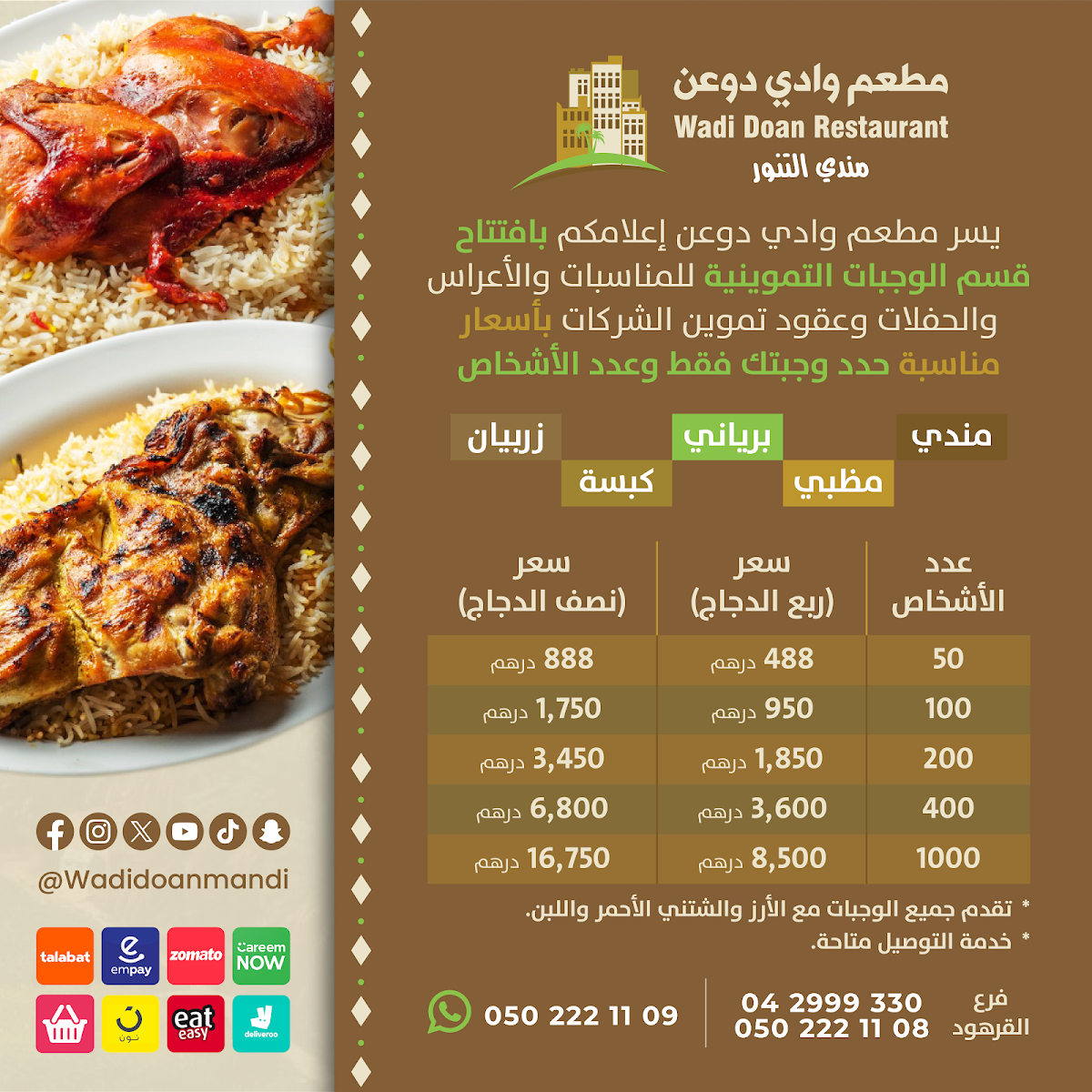 In summary, Wadi Doan Restaurant stands out in Dubai’s diverse food scene for its authentic Yemeni offerings, warm service, and inviting ambiance. Whether you are a longtime fan of Yemeni dishes or exploring new culinary horizons, Wadi Doan promises a satisfying and enjoyable meal that will leave you longing to return. If you're looking for a gastronomic adventure this week, make sure to give Wadi Doan a visit—you won't regret it!